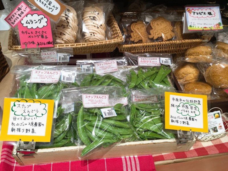今回は、ジャムの果物を育てている杉山ジャム工房農園の朝採り野菜、絹さや・スナップえんどうも持っていきます。