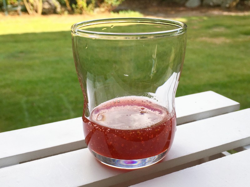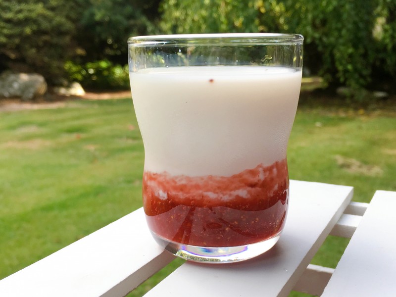 今日のおやつは、苺シロップを使った、苺ミルク。