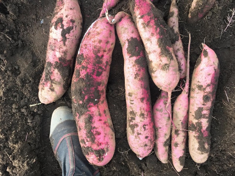 日曜日から雨続きの週間天気予報で、仕事の予定を考えて急遽芋掘り決行。ギックリ腰もだいぶ回復してきたし!
