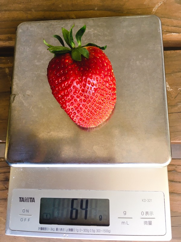 今日のいちご。一番大きいのは64g。
