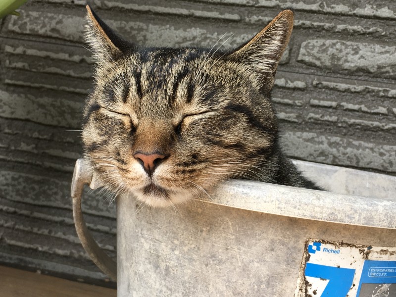 ゆるゆると秋の心地よい日を楽しんでる猫の悠太氏。