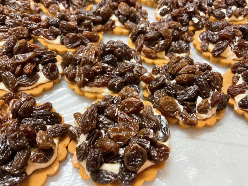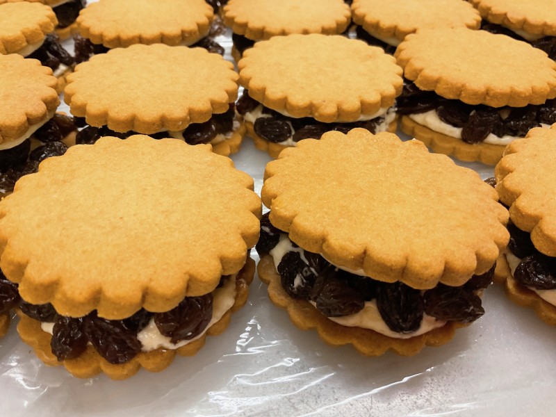 レーズンサンド用に焼いた特別配合の分厚いサブレ。