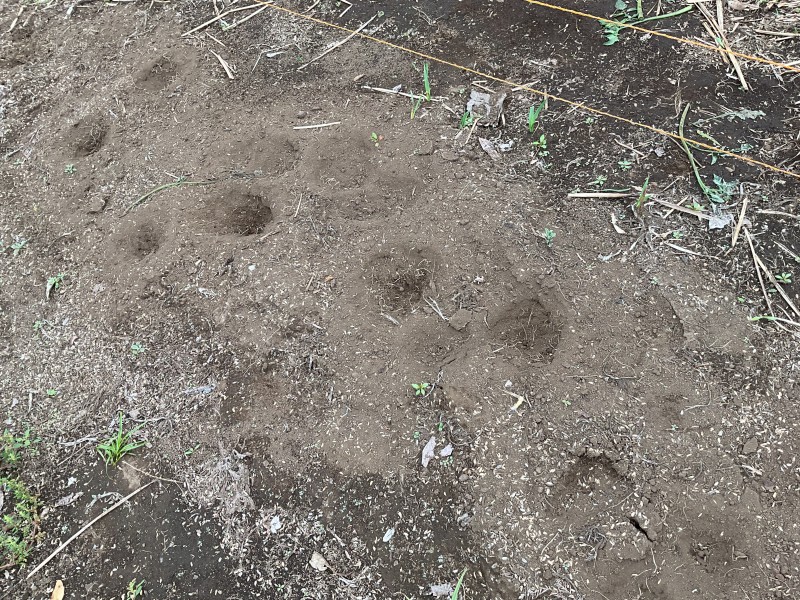 玉ねぎ掘ったあと電柵張ったりしたから、けっこう踏み固めてある場所なんだけど。