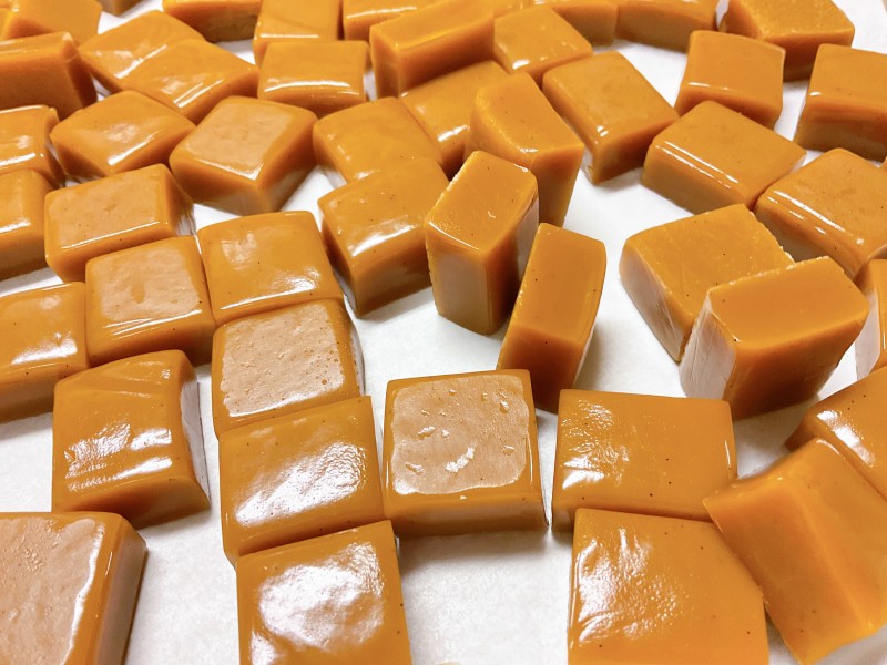 日本では生キャラメルって呼ばれることが多いのだけど、実際のところ、作る時に100℃なんて余裕で超えちゃってて110℃も余裕で越えちゃってる温度で炊き上げる生キャラメル。