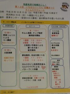 イベント雨天順延のおしらせ 明日17日(土)に開催予定だった「いーでん×2収穫まつり」は 雨天のため、18日(日)に延期になりました! 午後からイベント準備に農業センターへ行ってきました。 バザー準備をしてきたのですが、 […]